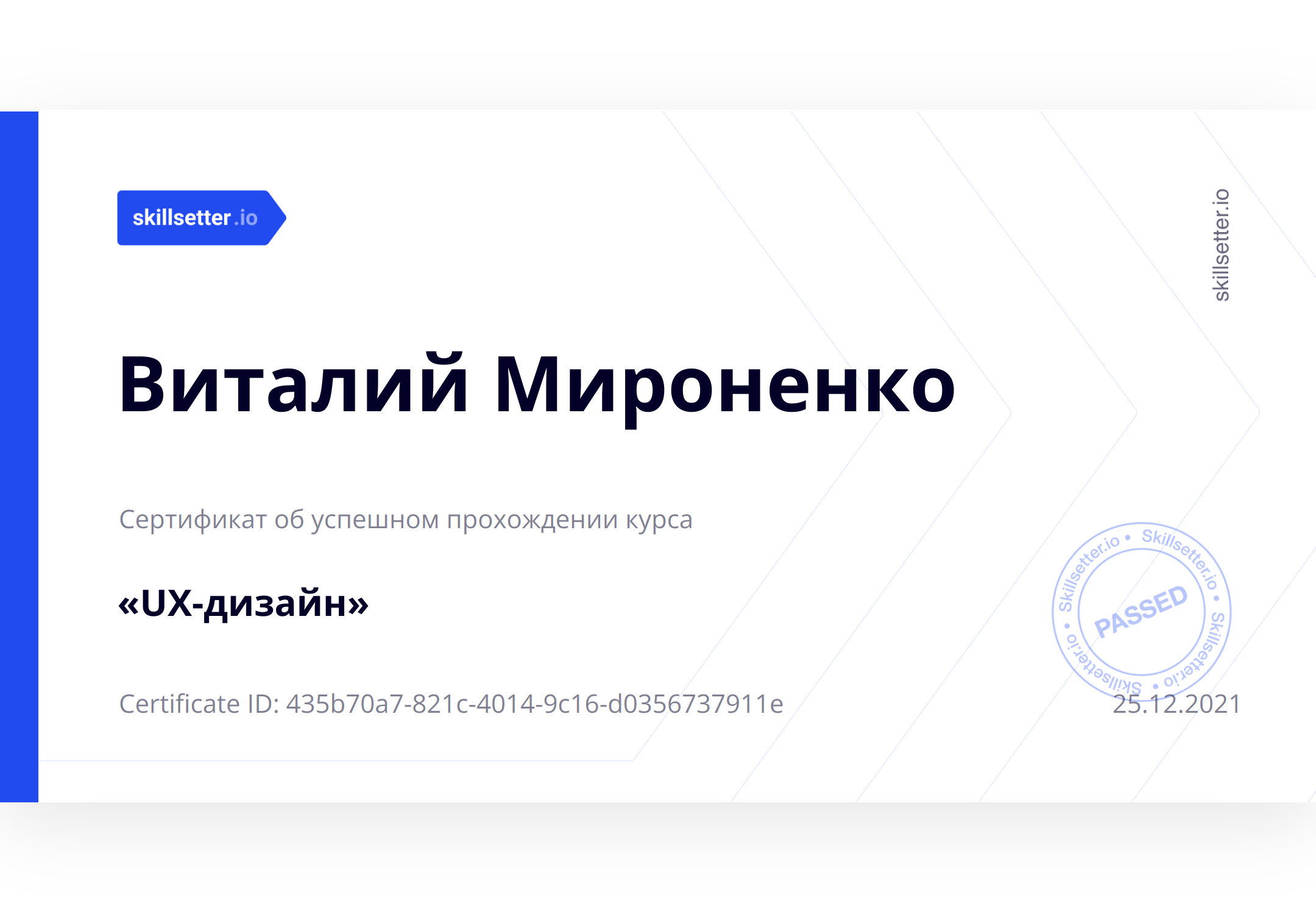 Сертификат об успешном прохождении курса