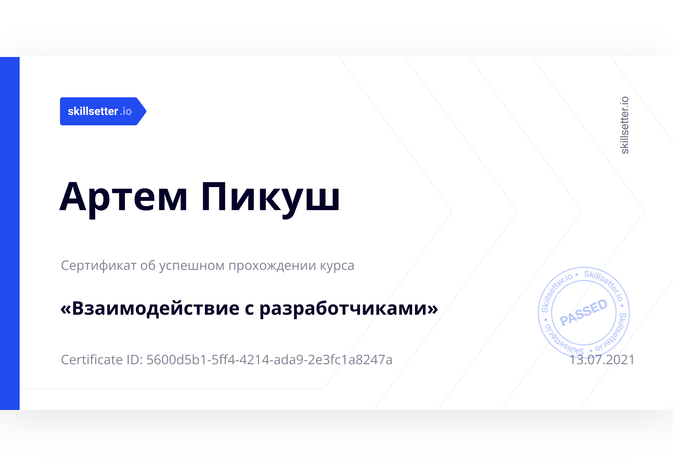 Сертификат об успешном прохождении курса