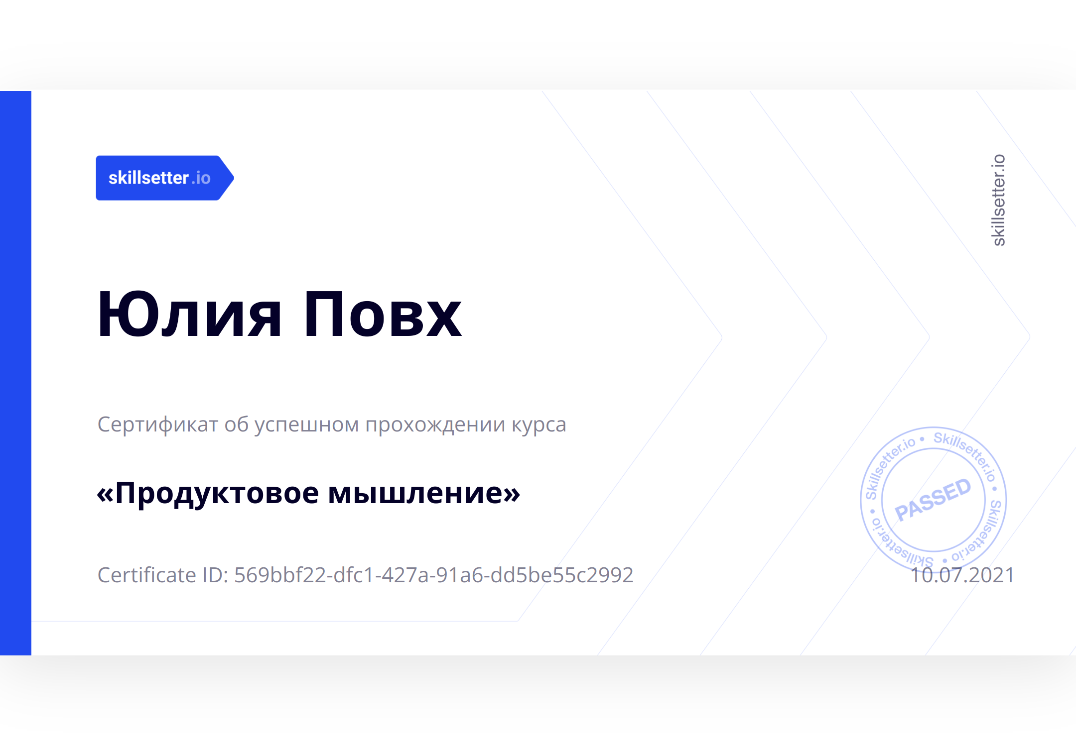 Сертификат об успешном прохождении курса