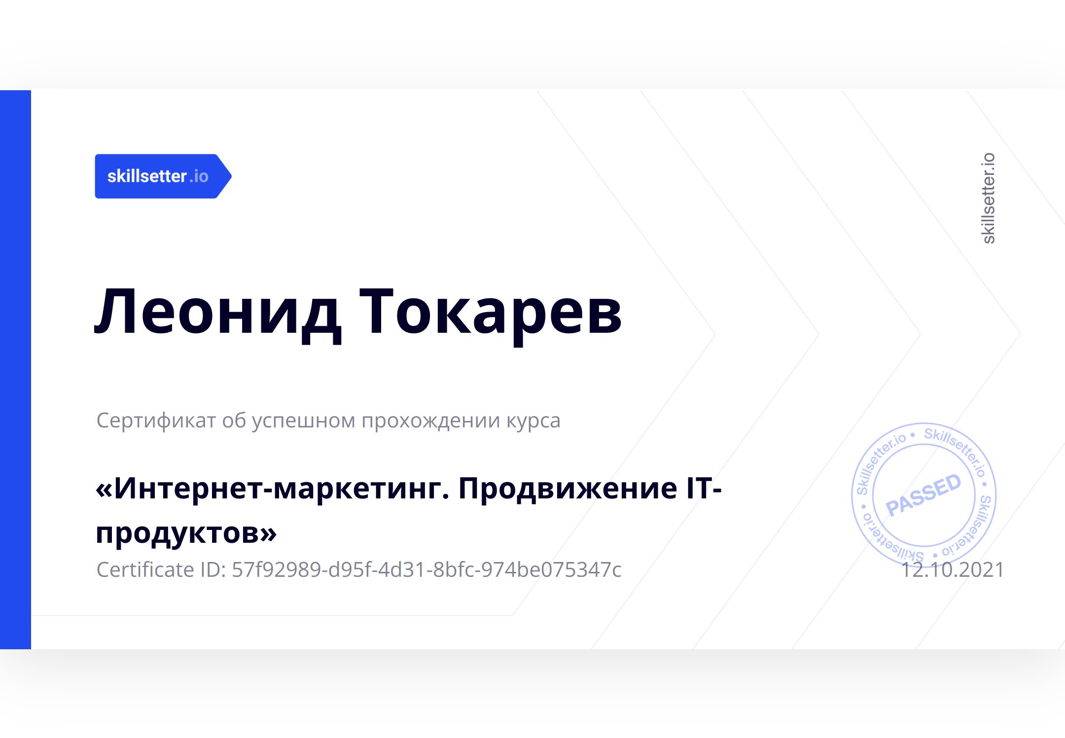 Сертификат об успешном прохождении курса