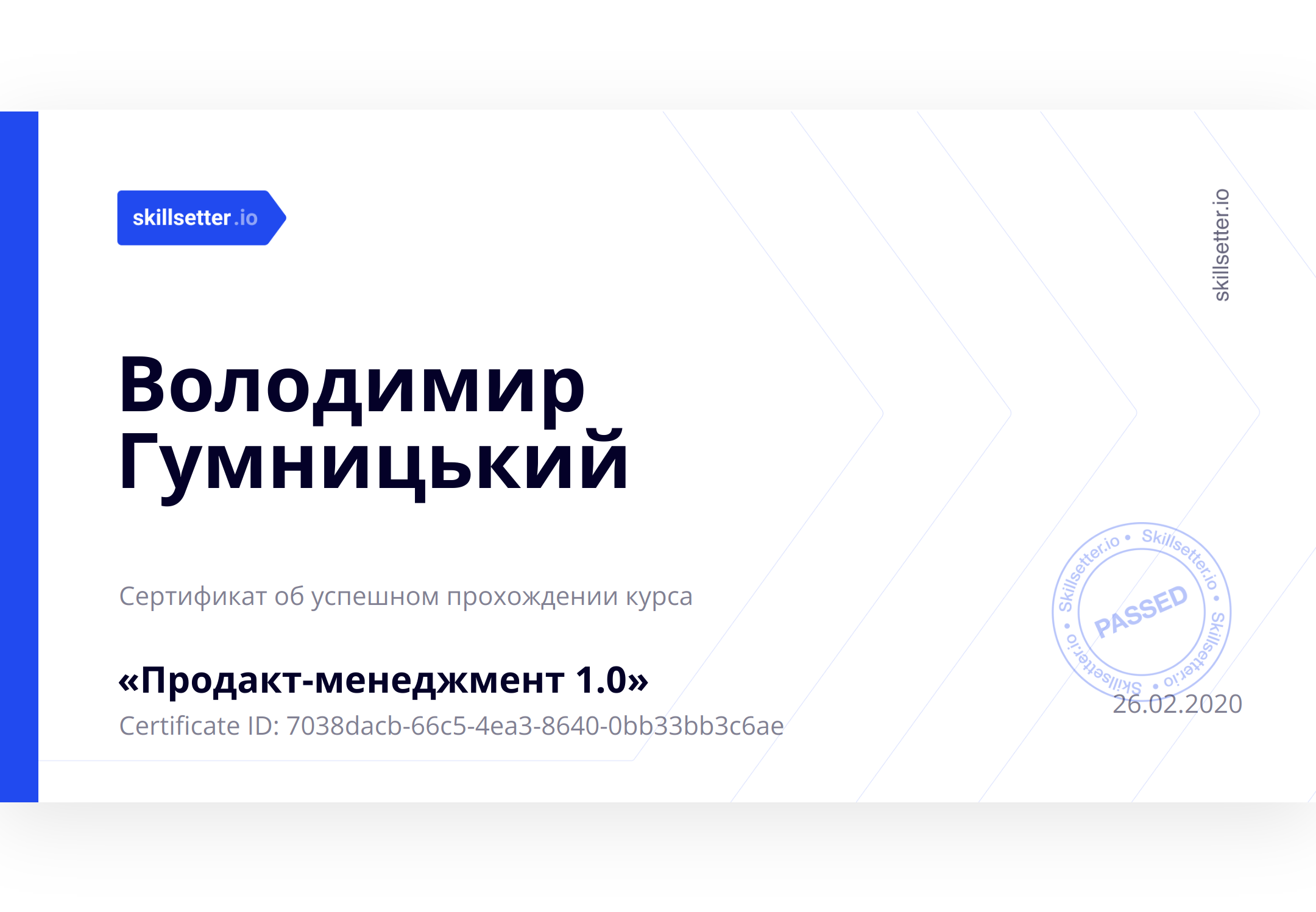 Сертификат об успешном прохождении курса