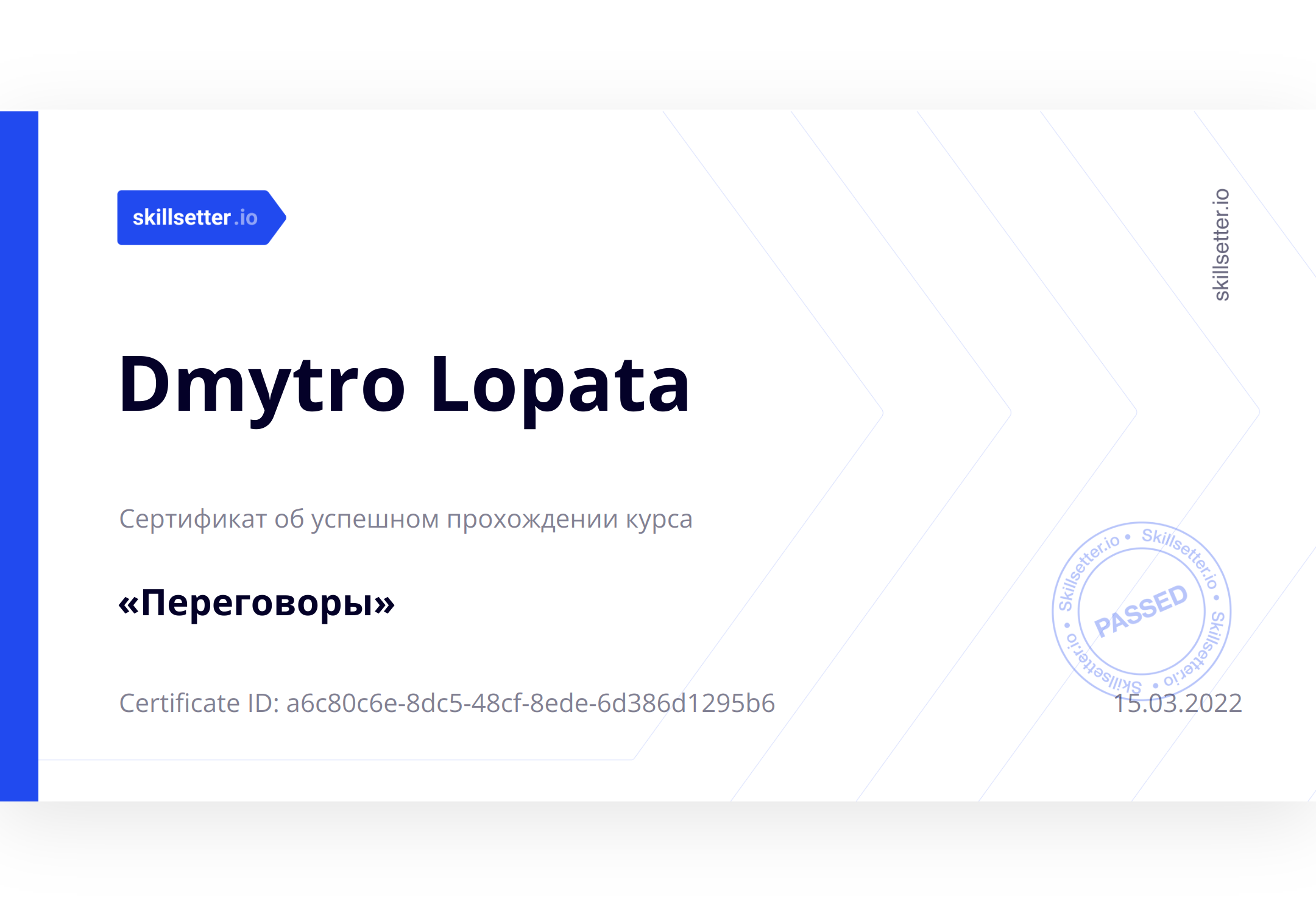 Сертификат об успешном прохождении курса