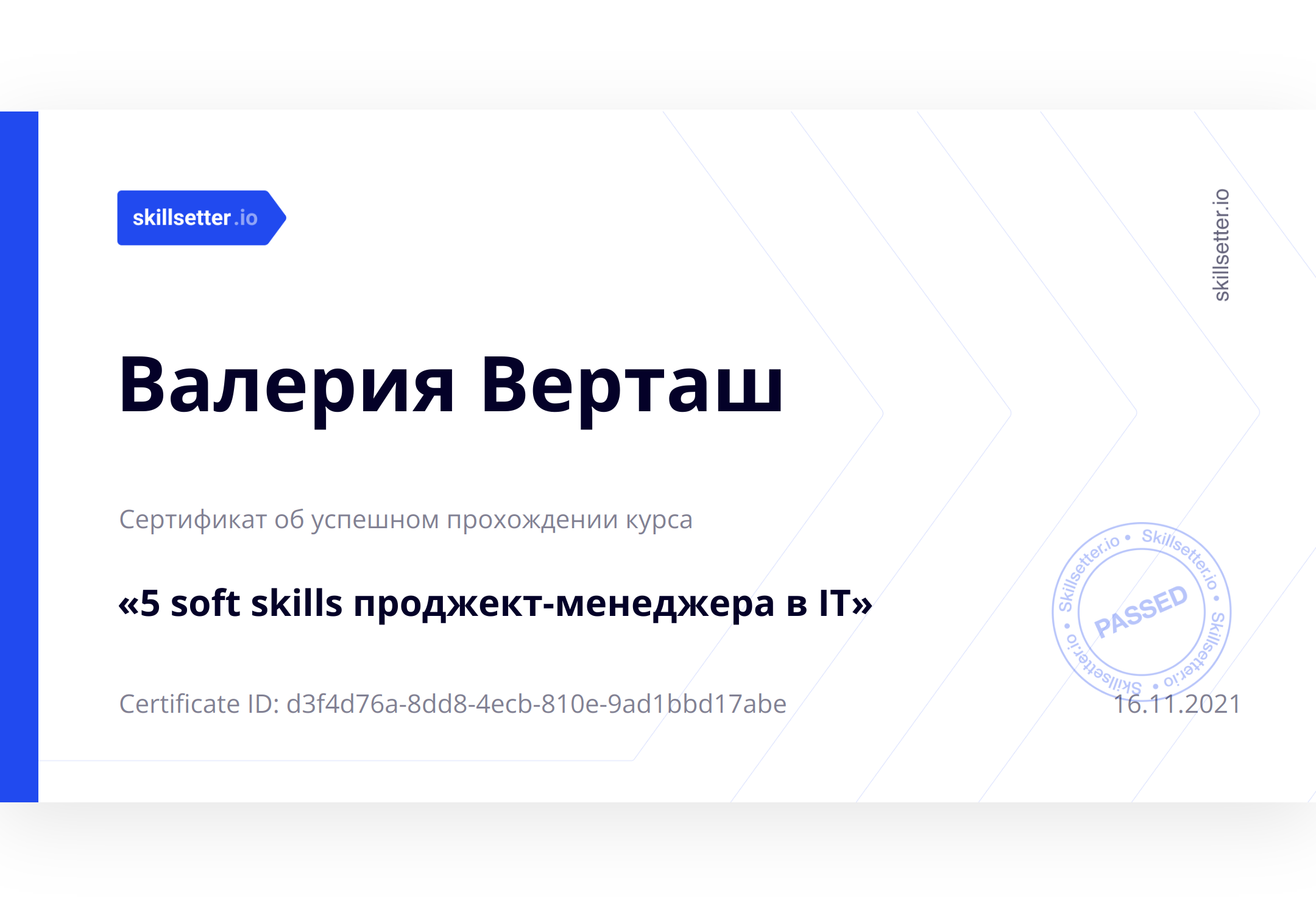 Сертификат об успешном прохождении курса