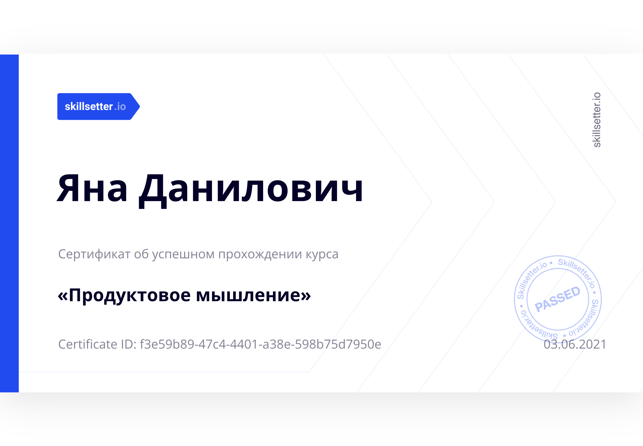 Сертификат об успешном прохождении курса